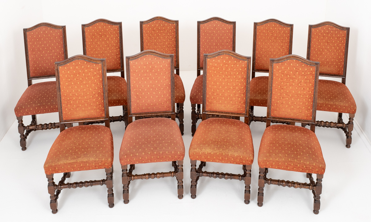 Set of 10 Oak Jacobean Style Dining Chairs