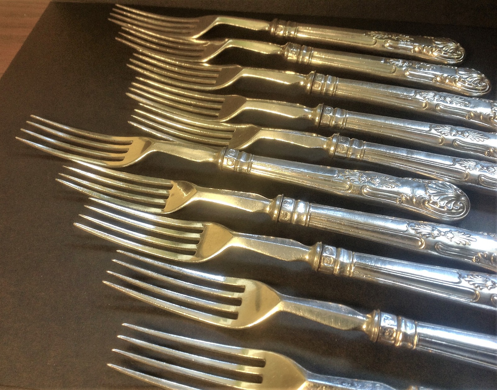 Set of 10 Silver Handled Victorian Fruit Dessert Forks c.1840
