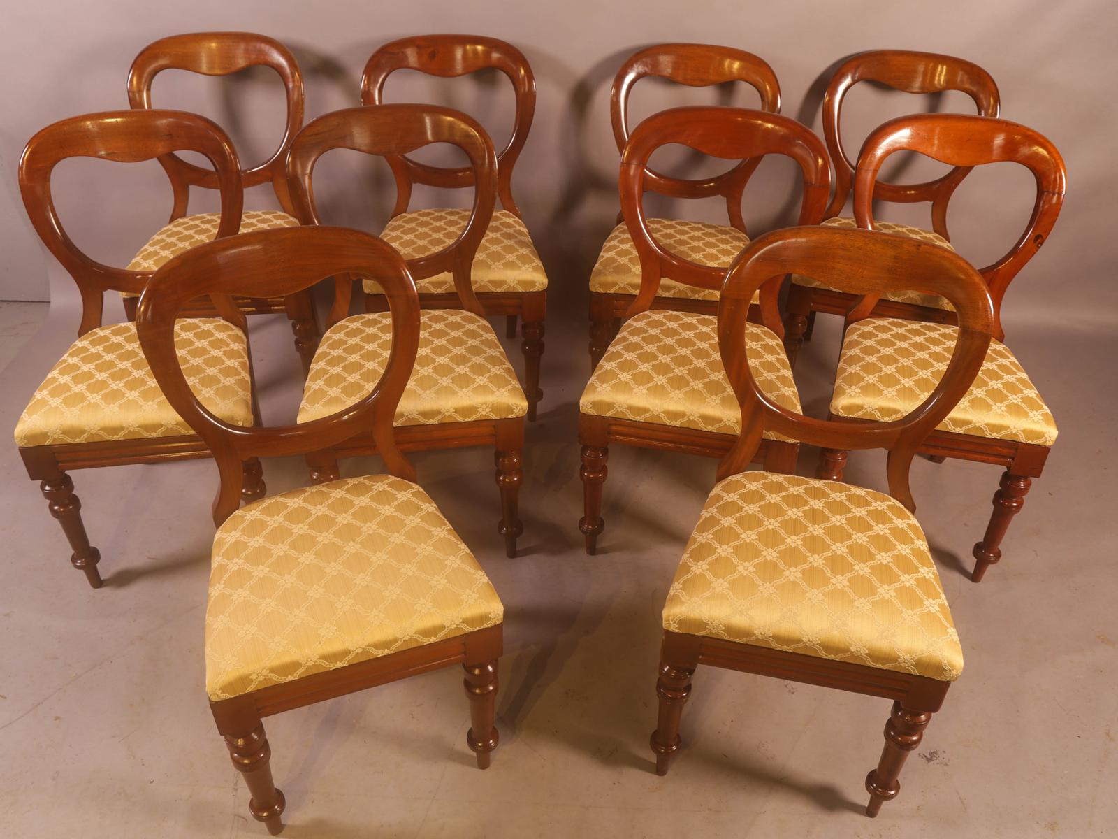 Set of 10 Victorian Mahogany Balloon Back Dining Chairs