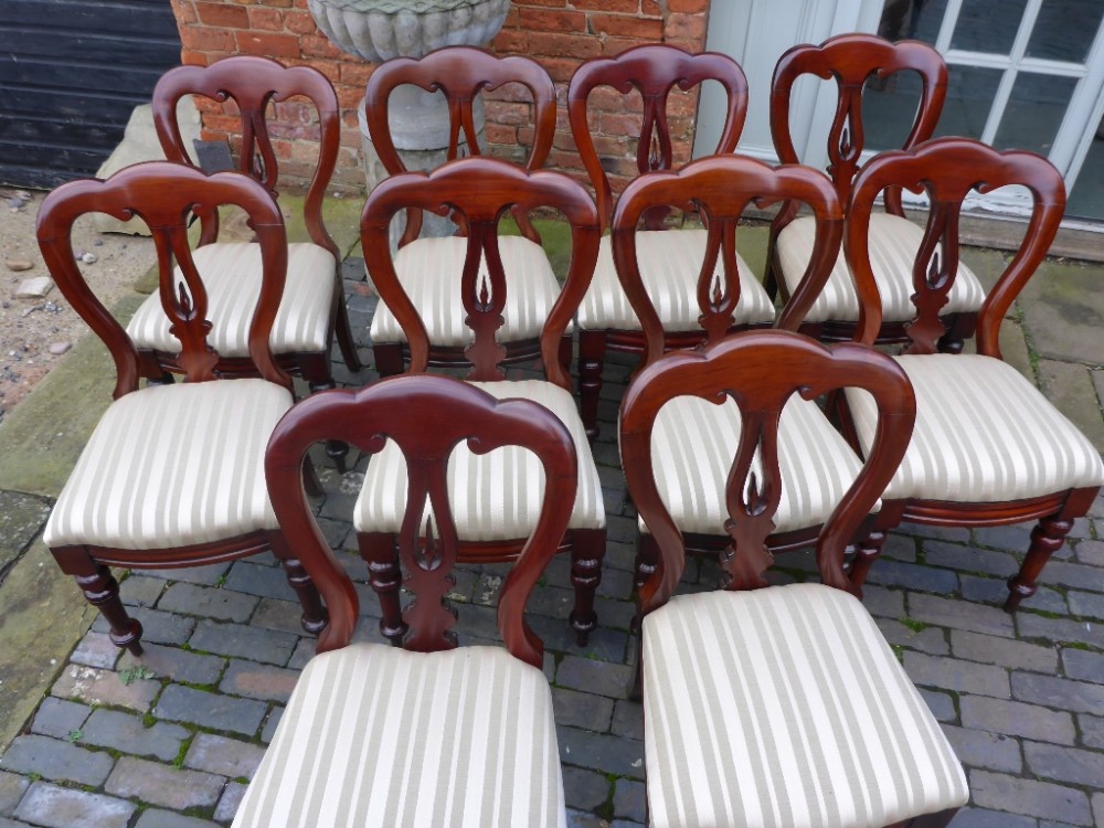 Set of 10 Victorian Mahogany Balloon Back Dining Chairs