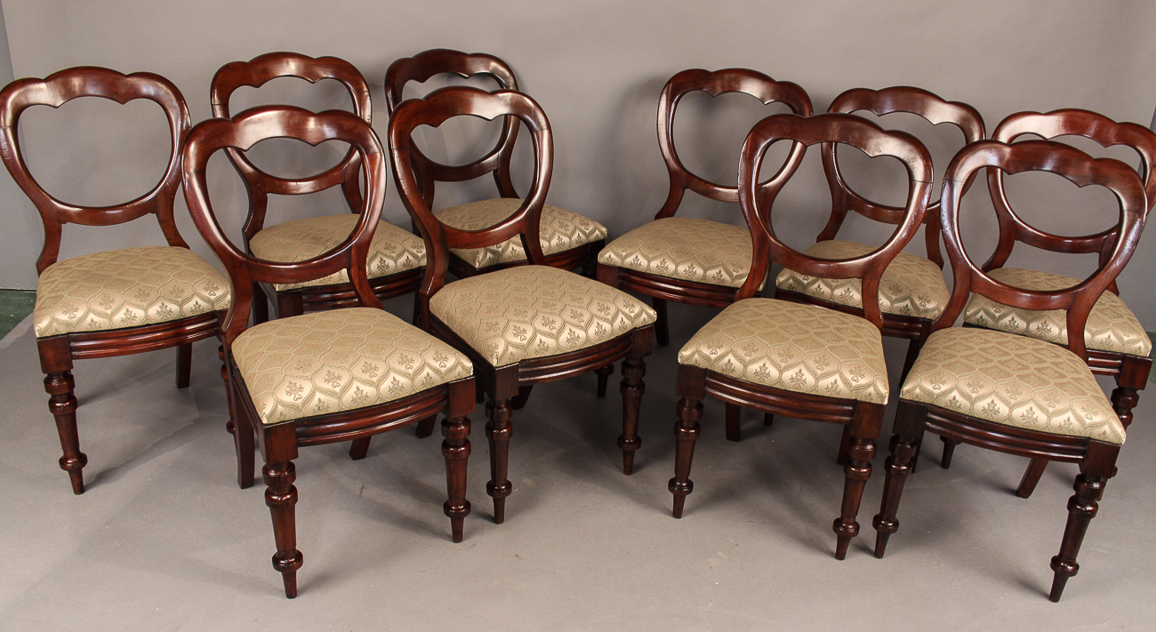 Set of 10 Victorian Mahogany Balloon Back Dining Chairs