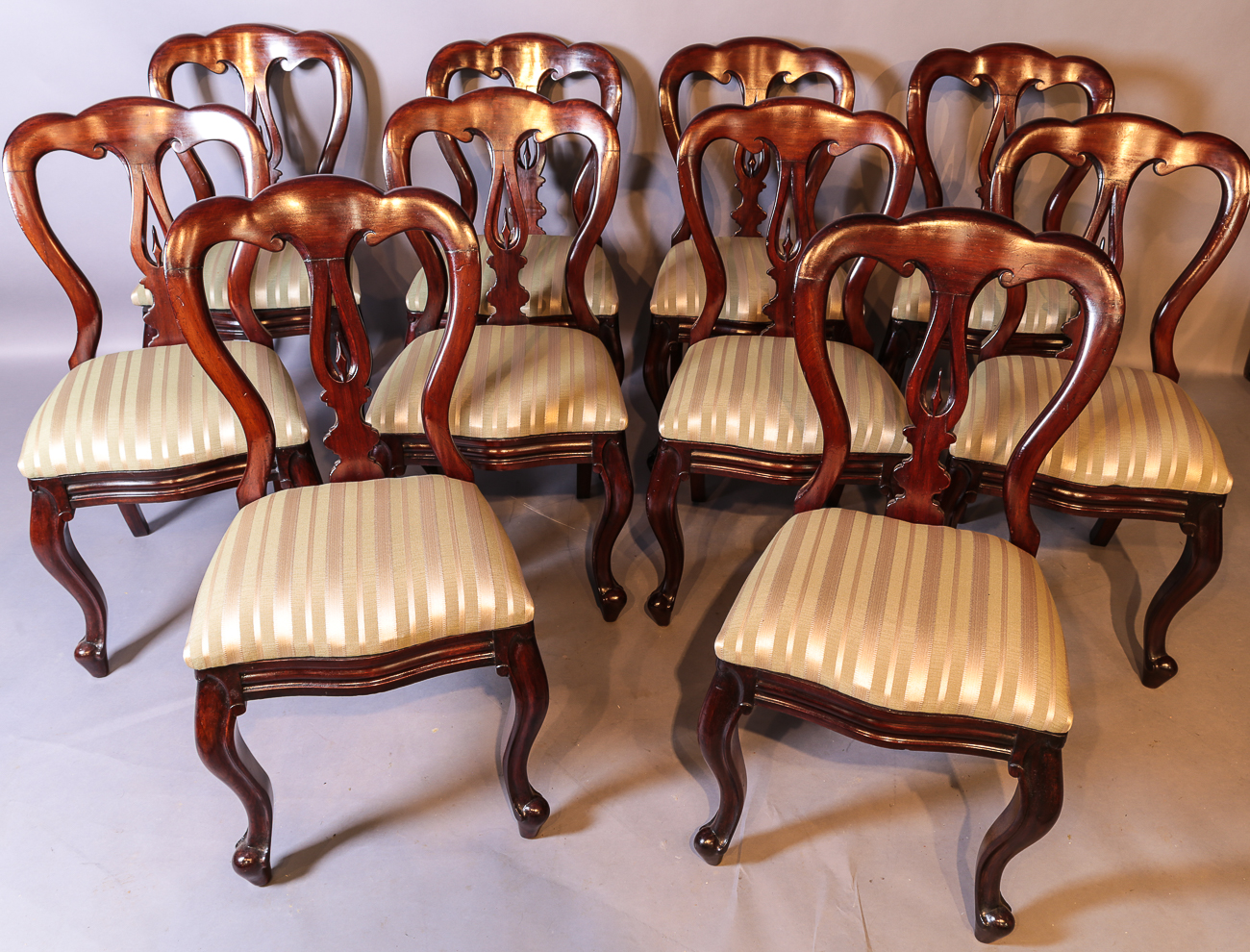 Set of 10 Victorian Spear Point Balloon Back Dining Chairs