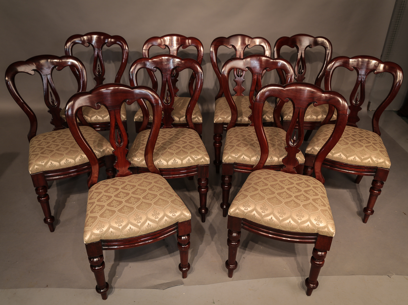 Set of 10 Victorian Spear Point Balloon Back Dining Chairs
