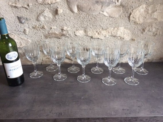 Set of 10 Vintage Early C20th French Lead Glass White Wine Glasses in Perfect Order