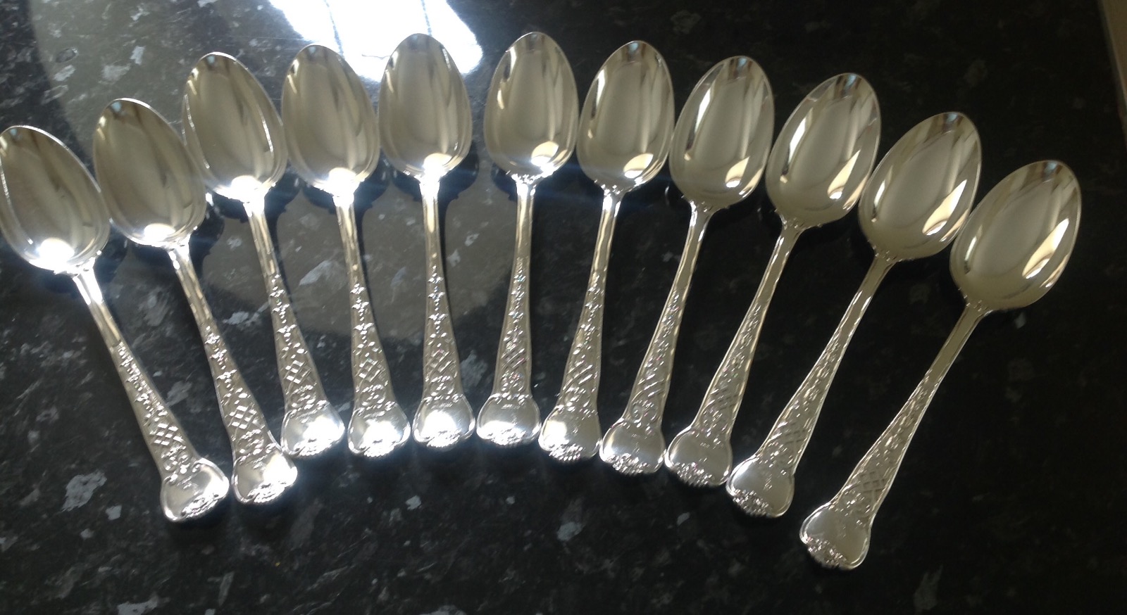 Set of 11 Antique Victorian Silver Elizabethan Table Serving Spoons