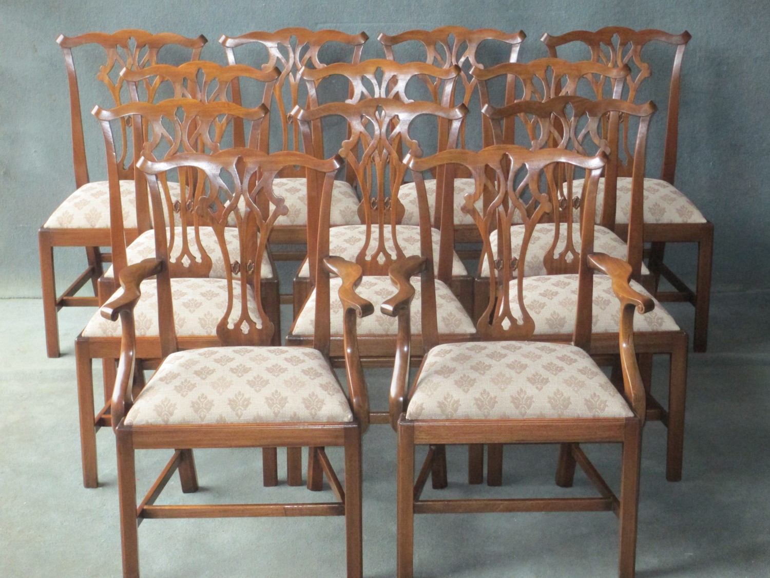 Set of 12 (10 + 2) Mahogany Chippendale Style Chairs