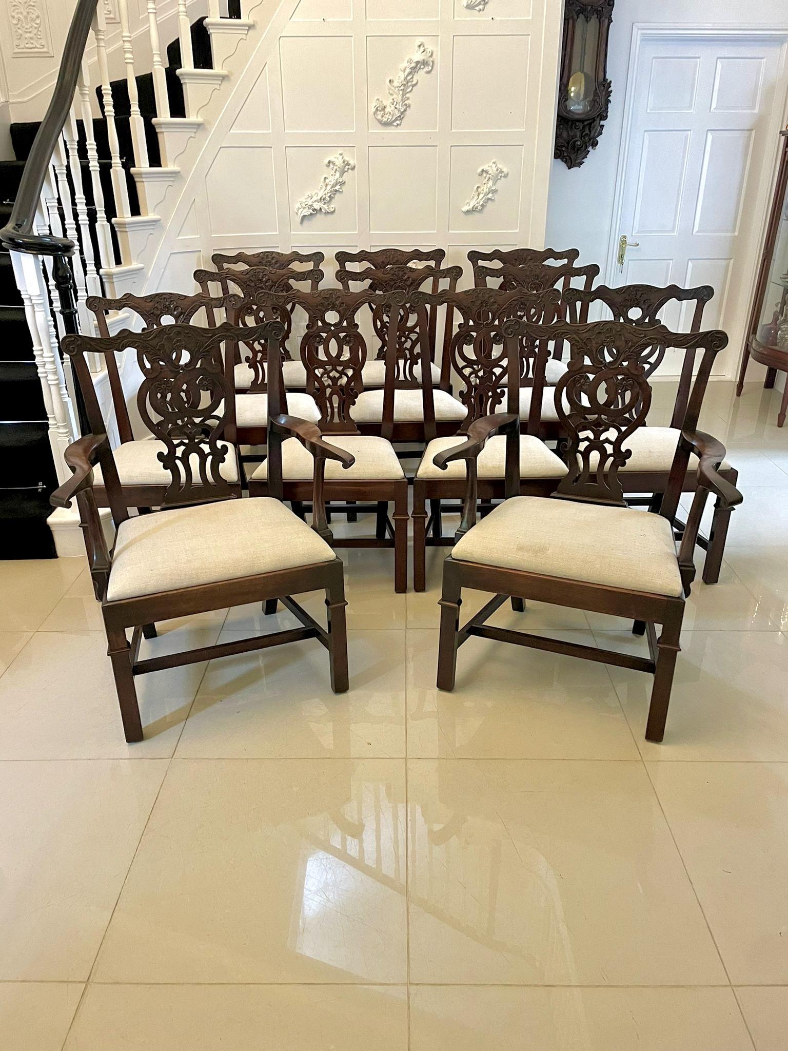 Set of 12 Antique 18th Century George III Quality Carved Mahogany Chippendale Chairs