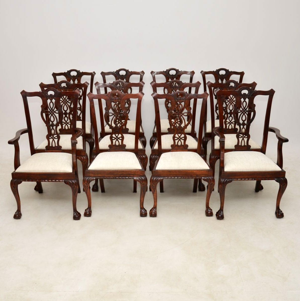 Set of 12 Antique Mahogany Chippendale Dining Chairs C.1890