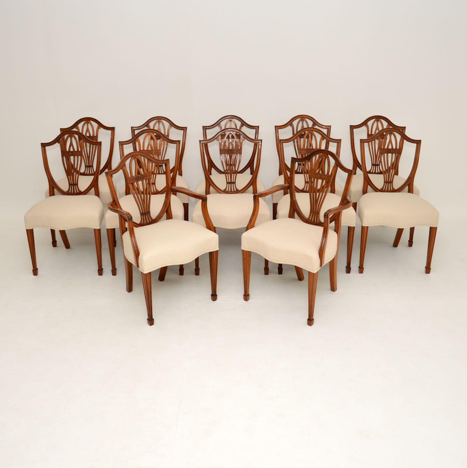 Set of 12 Antique Sheraton Style Shield Back Dining Chairs