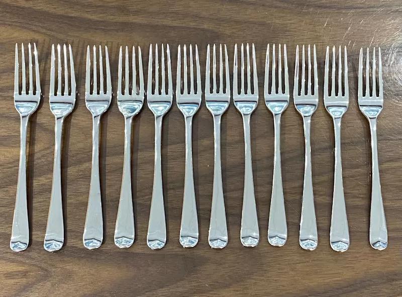 Set of 12 Antique Silver George III Old English Pattern Dessert Forks Made in 1802