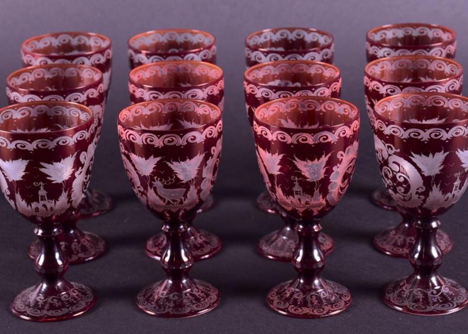 Set of 12 Bohemian Ruby Red Wine Glasses (1 of 1)