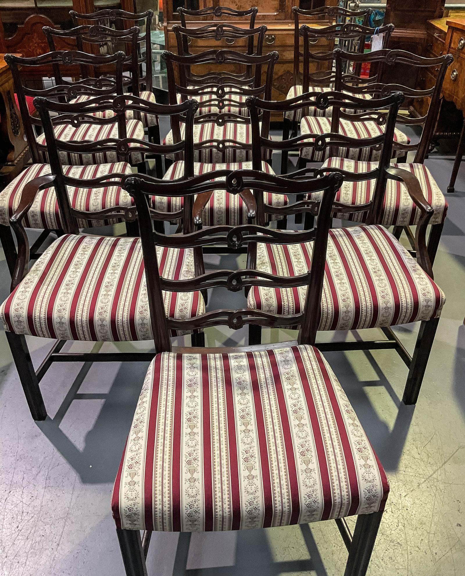 Set of 12 Ribbon Back Dining Chairs Mahogany