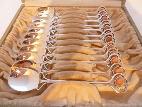 Set of 12 Solid Silver Art Nouveau Spoons Paul Tubben Archibald Knox Style c.1910
