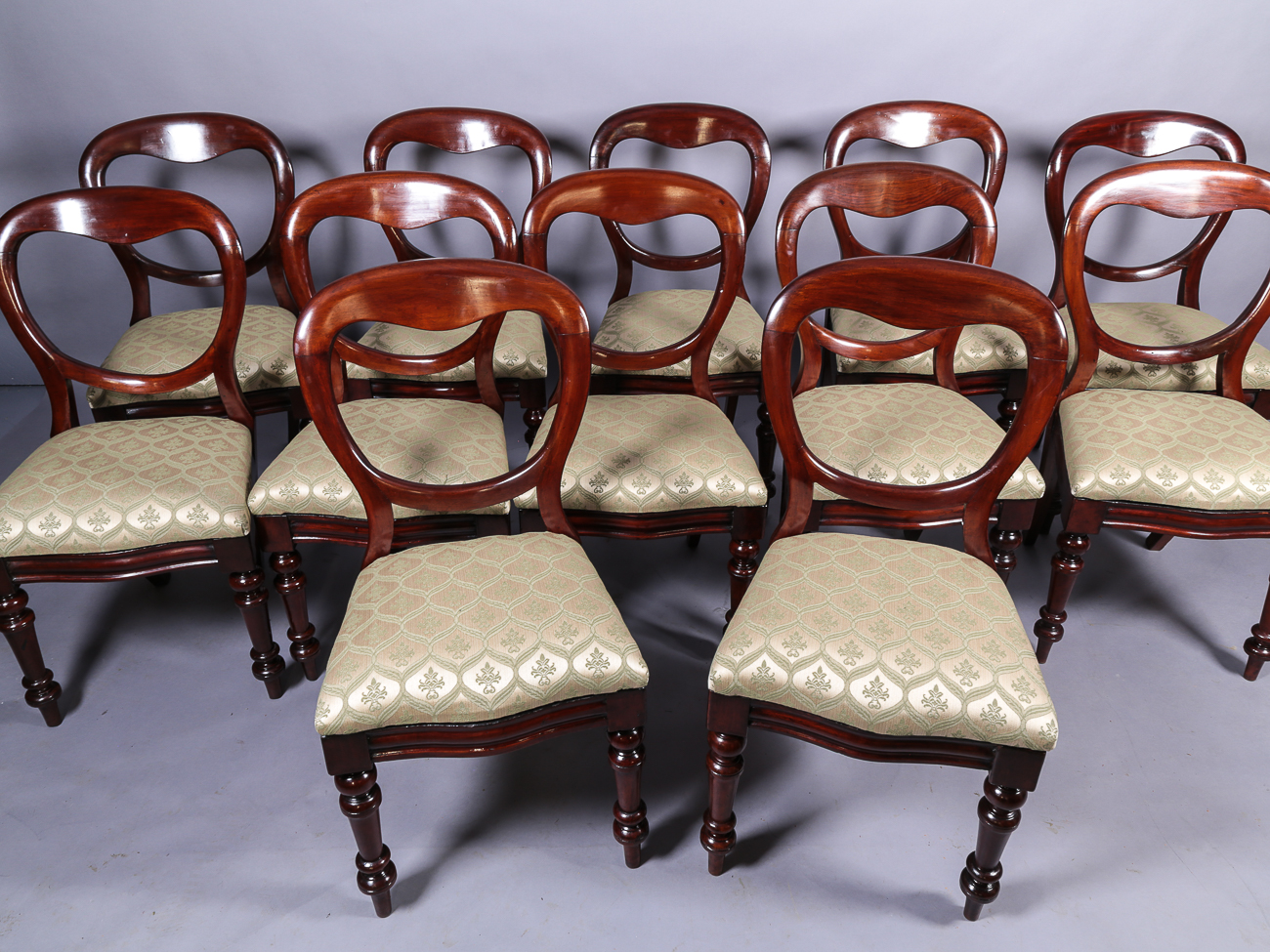 Set of 12 Victorian Mahogany Balloon Back Dining Chairs