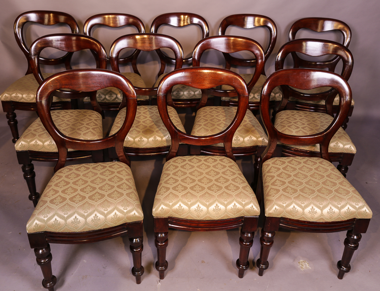 Set of 12 Victorian Mahogany Balloon Back Dining Chairs