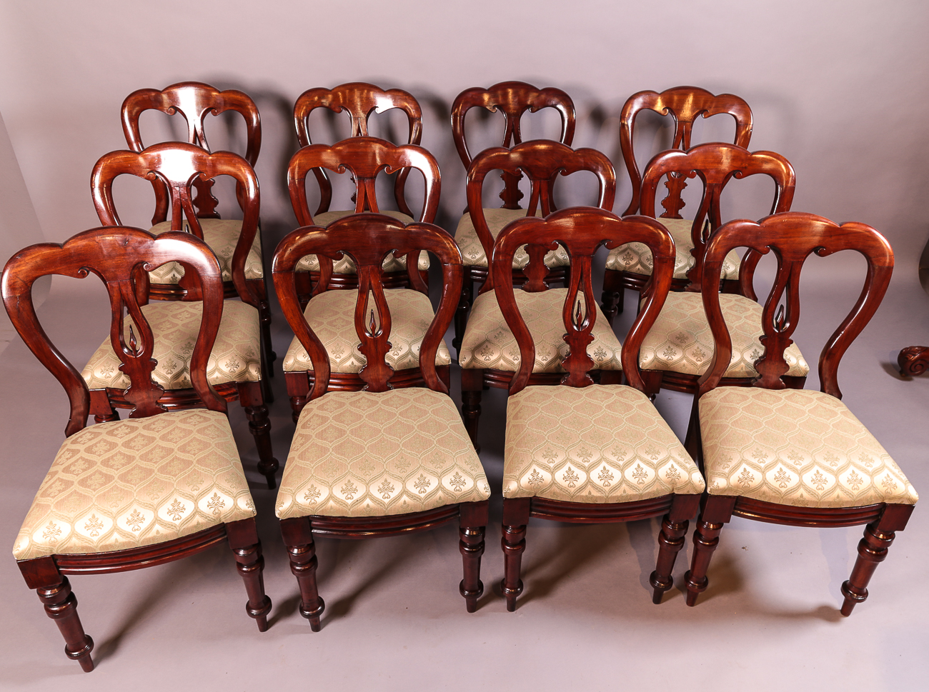 Set of 12 Victorian Mahogany Spear Point Balloon Back Dining Chairs
