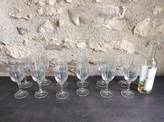 Set of 12 Vintage Early C20th French Lead Glass White Pudding, Desert Glasses in Perfect Order