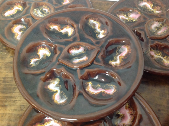 Set of 13 1960s / 1970s Vallauris French Volcanic Pottery Oyster Plate 12 Plates & One Server