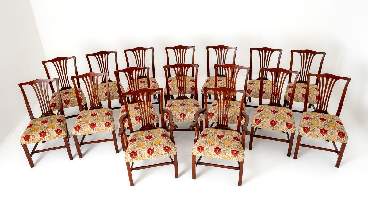 Set of 16 (14 + 2) Mahogany Chippendale Style Dining Chairs