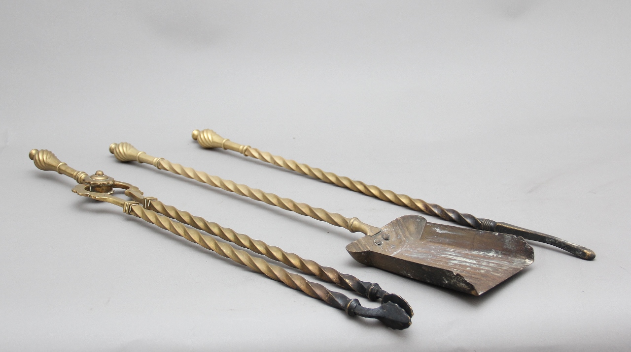 Set of 19th Century Brass Fire Irons (1 of 1)