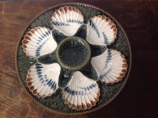 Set of 19th Century French "Longchamp" Ironstone Majolica Barbaotine Oyster Plates