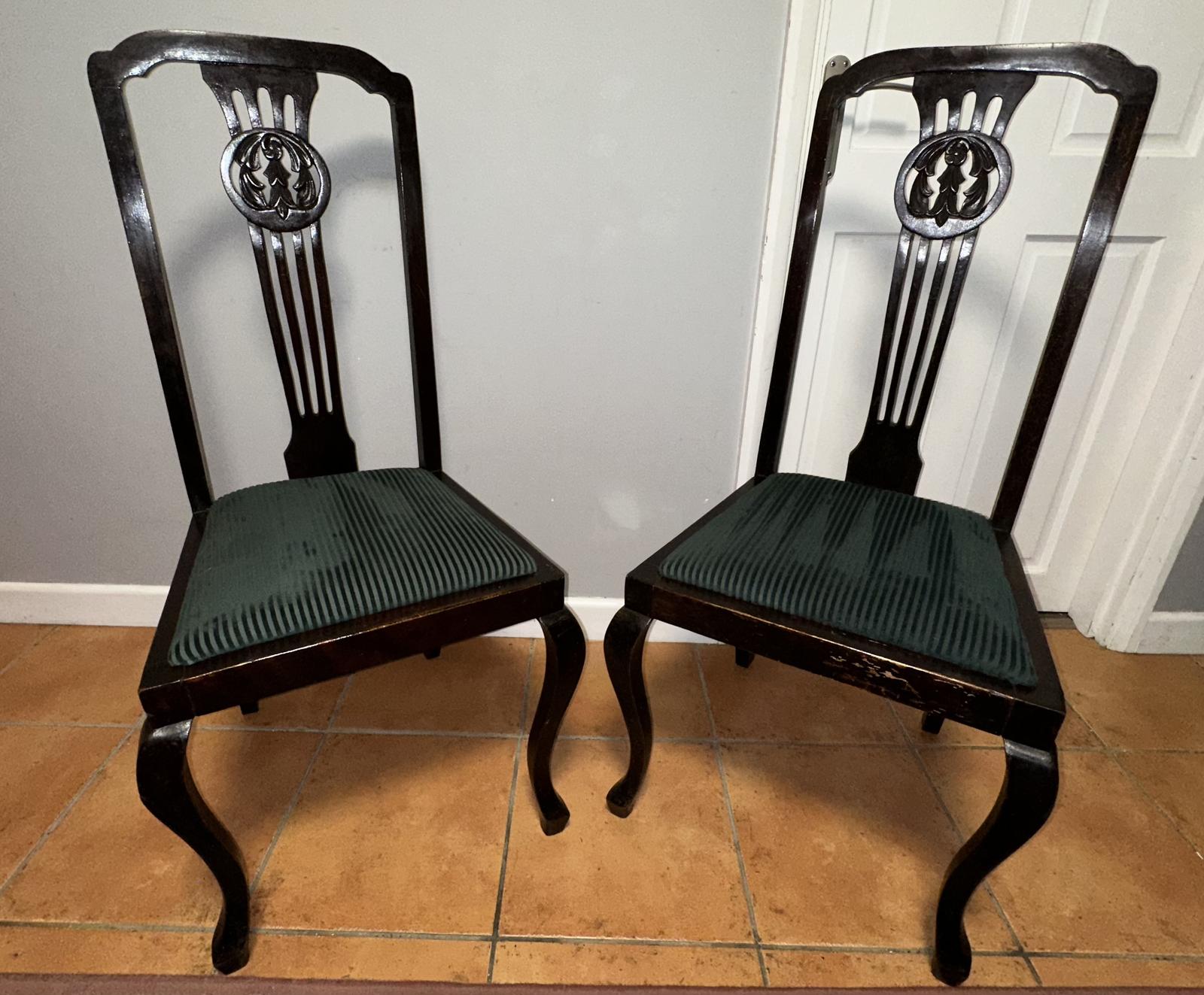 Set of 2 Oak Art Deco Dining Chairs Green Seats