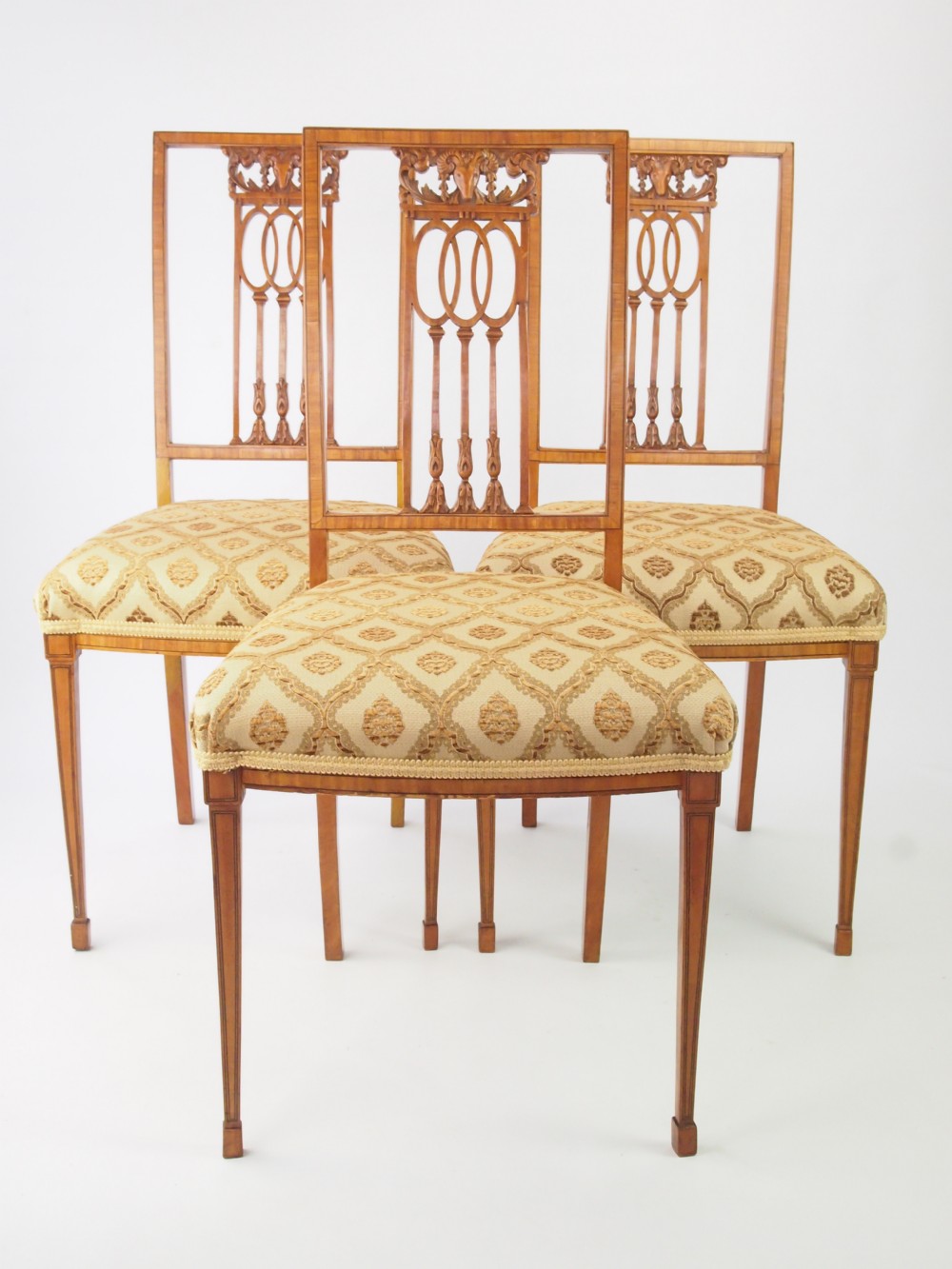 Set of 3 Antique Edwardian Satin Walnut Side Chairs (1 of 1)