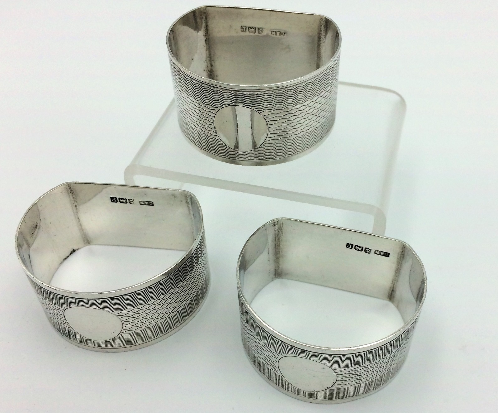 Set of 3 Art Deco Napkin Rings Crisford & Norris Birmingham 1914