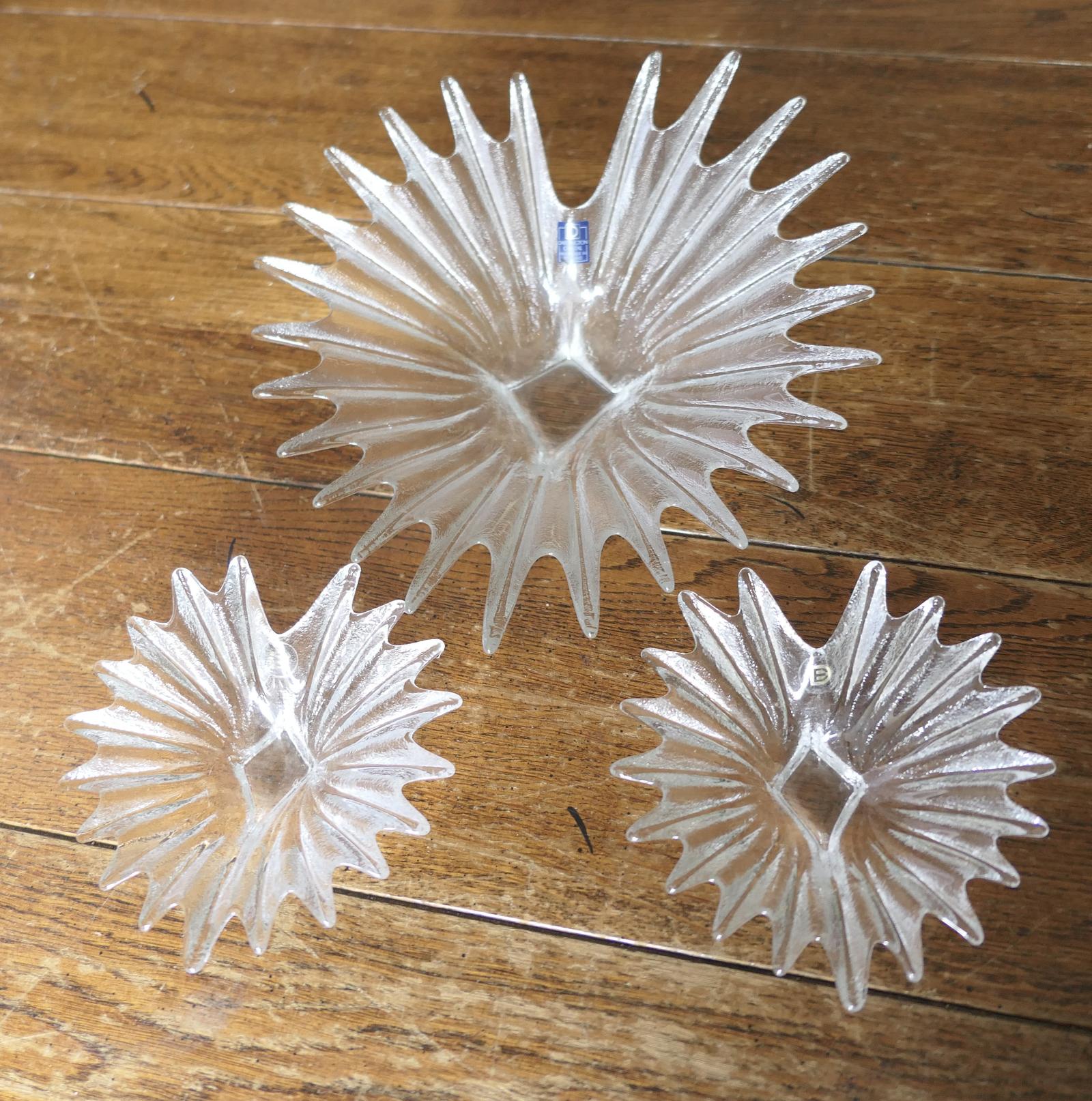 Set of 3 Dartington Crystal Palm Design Dishes by Anita Harris