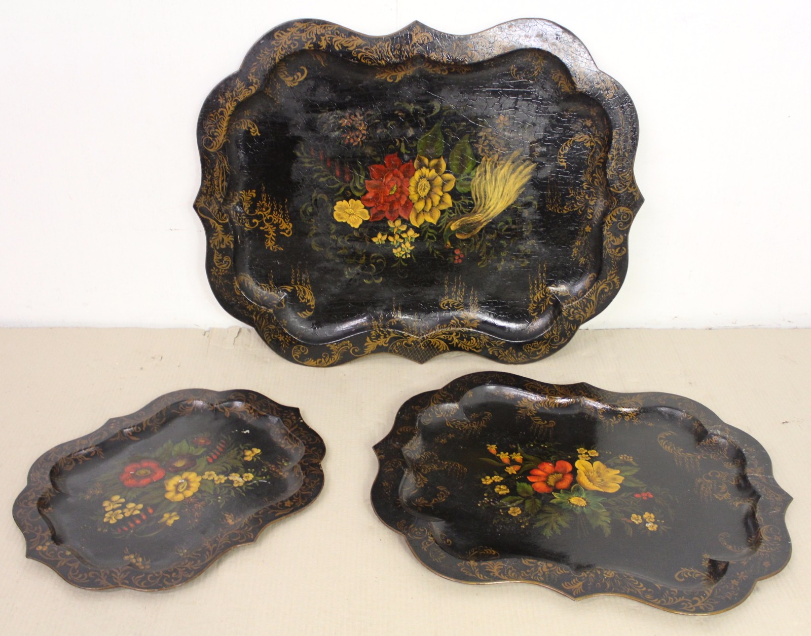 Set of 3 Decorated Victorian Toleware Trays c.1860 (1 of 1)