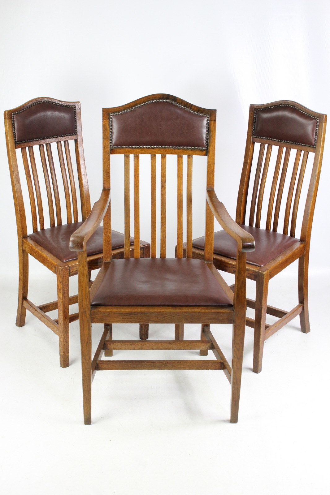 Set of 3 Edwardian Arts & Crafts Oak Chairs (1 of 13)
