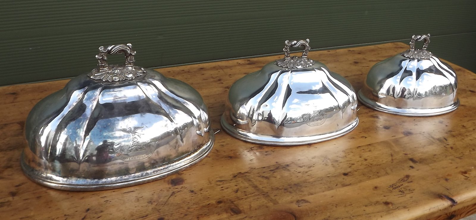 Set of 3 Graduated James Dixon Silver-Plate Meat Covers