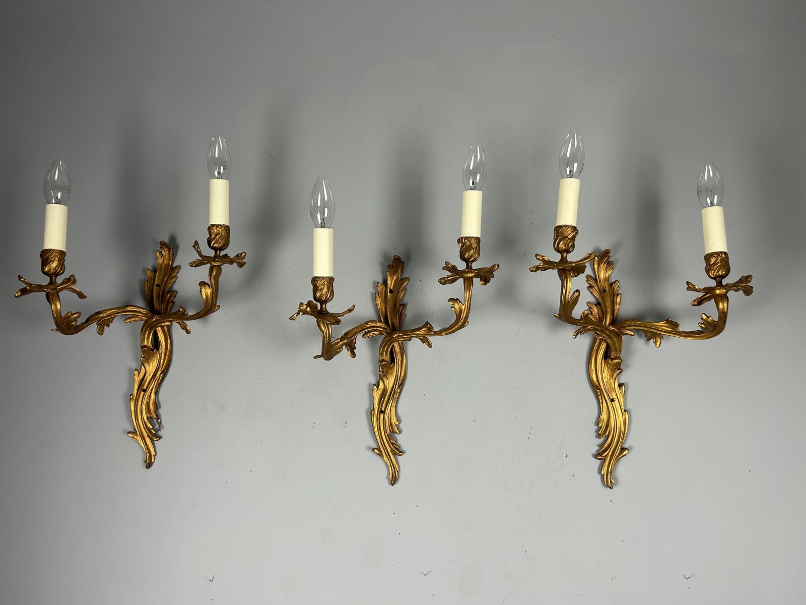 Set of 3 Large Rococo Gilt French Wall Lights