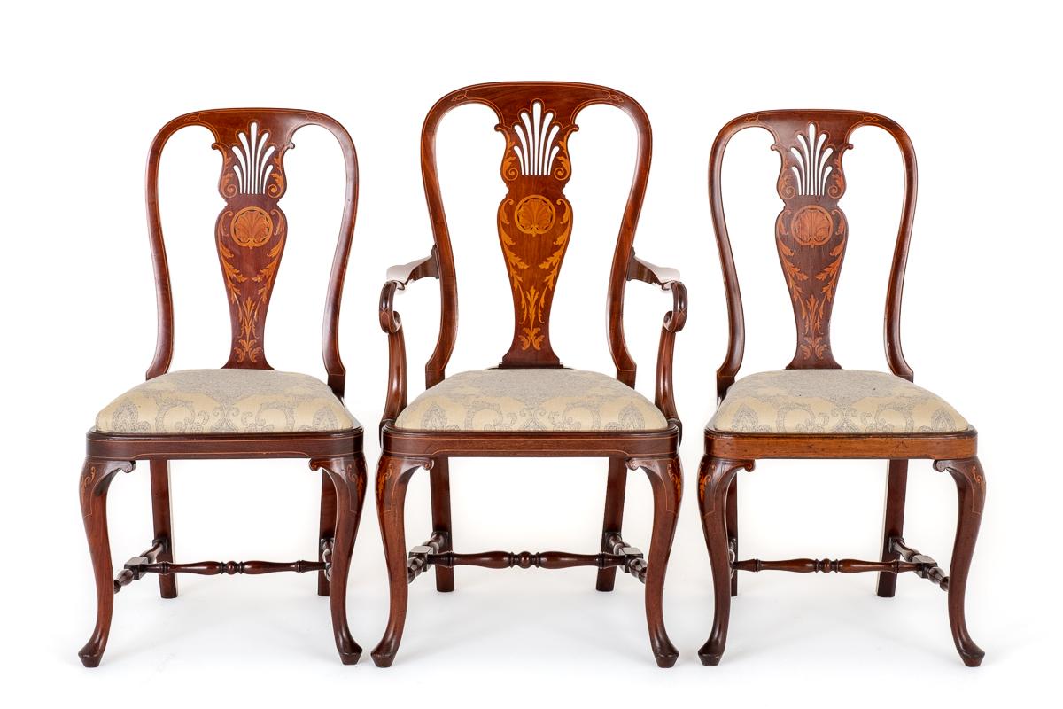 Set of 3 Mahogany Queen Anne Style Desk Chairs c.1900 (1 of 18)