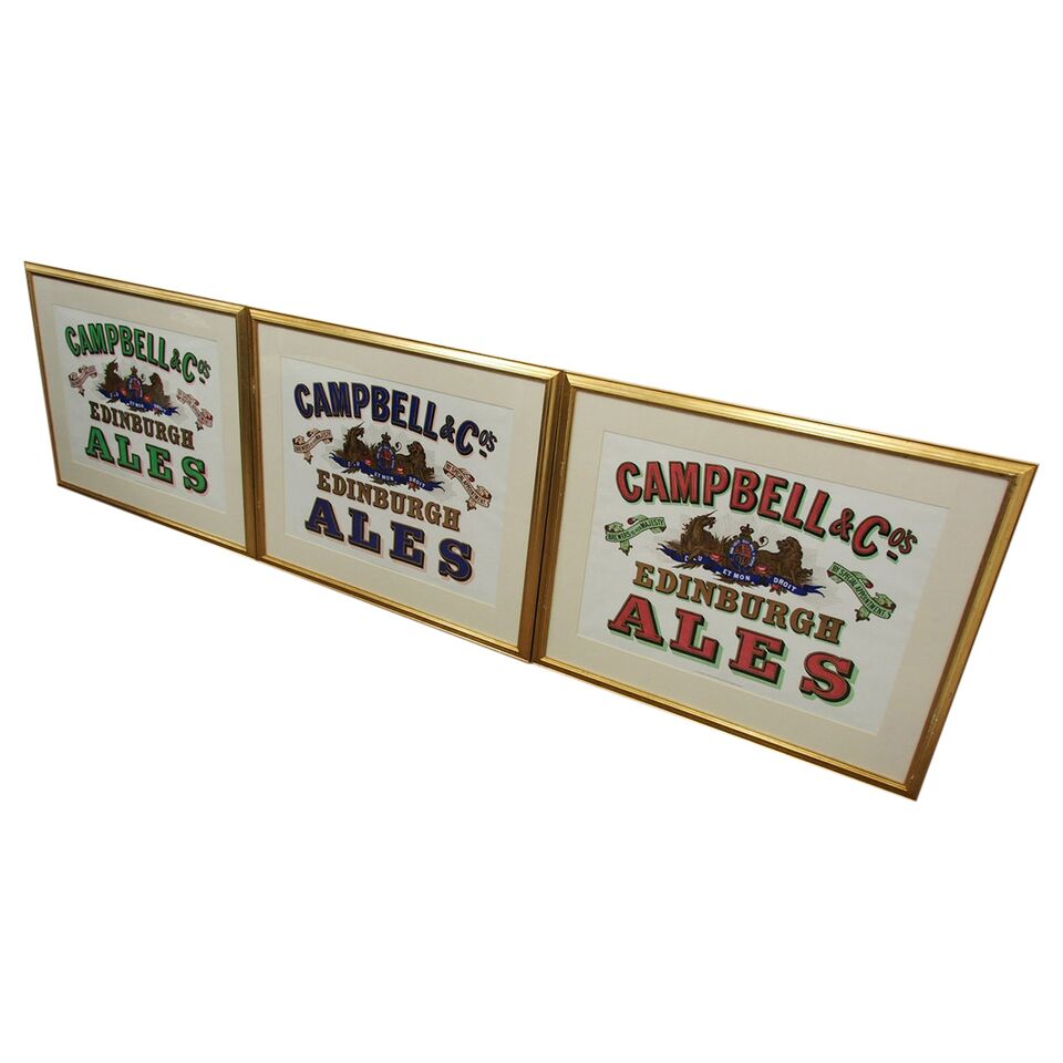 Set of 3 Pub Advertising Prints For Campbell & Co, Edinburgh Ales