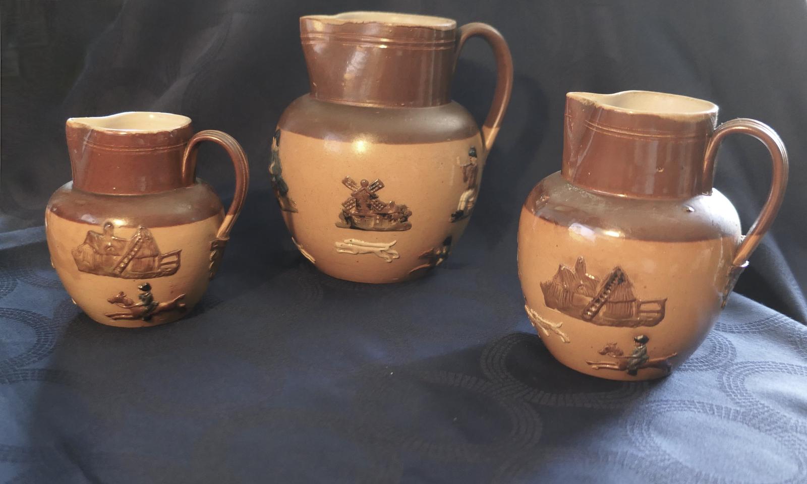 Set of 3 Rare Coloured Royal Doulton Stoneware Harvest Jugs