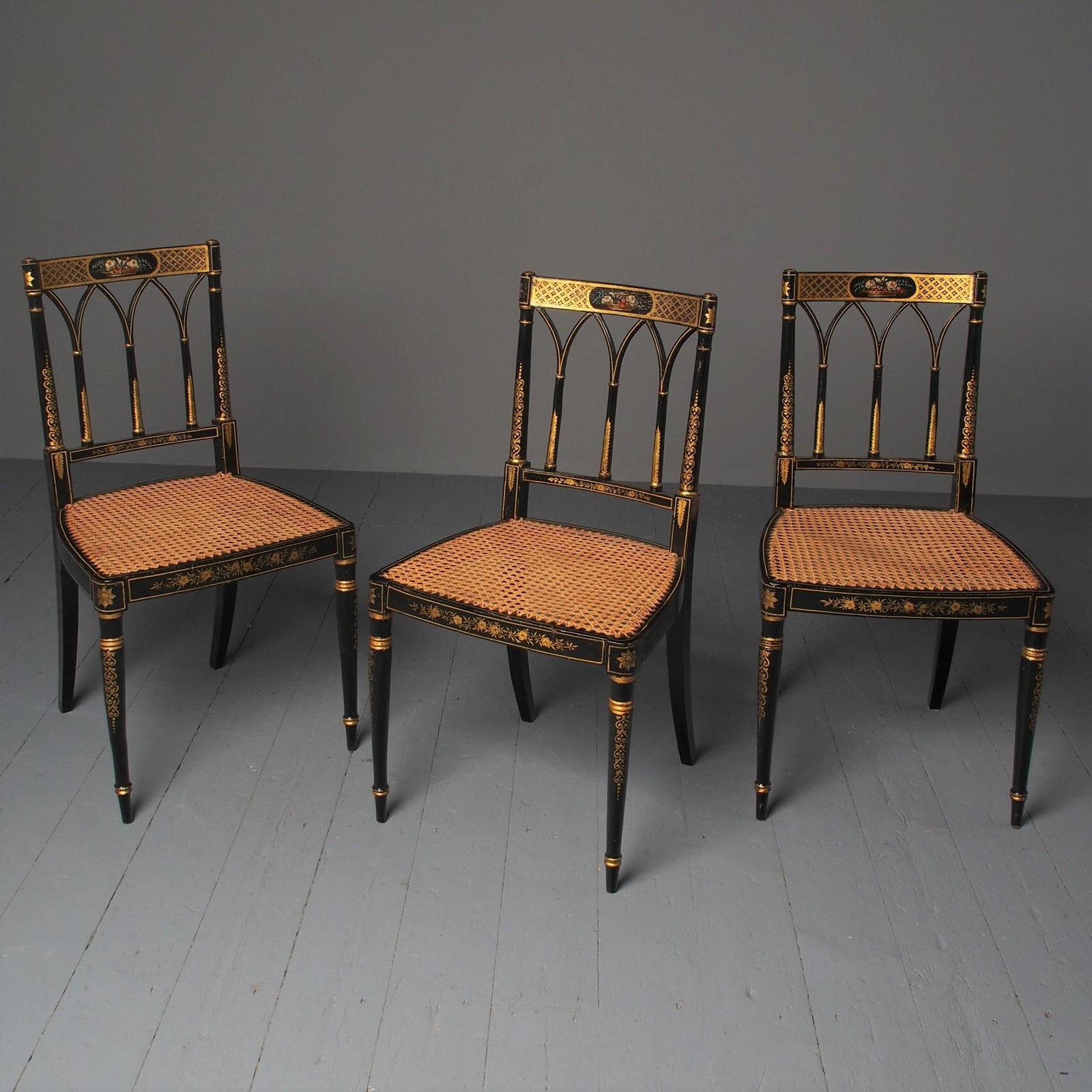 Set of 3 Regency Style Painted Bergere Chairs