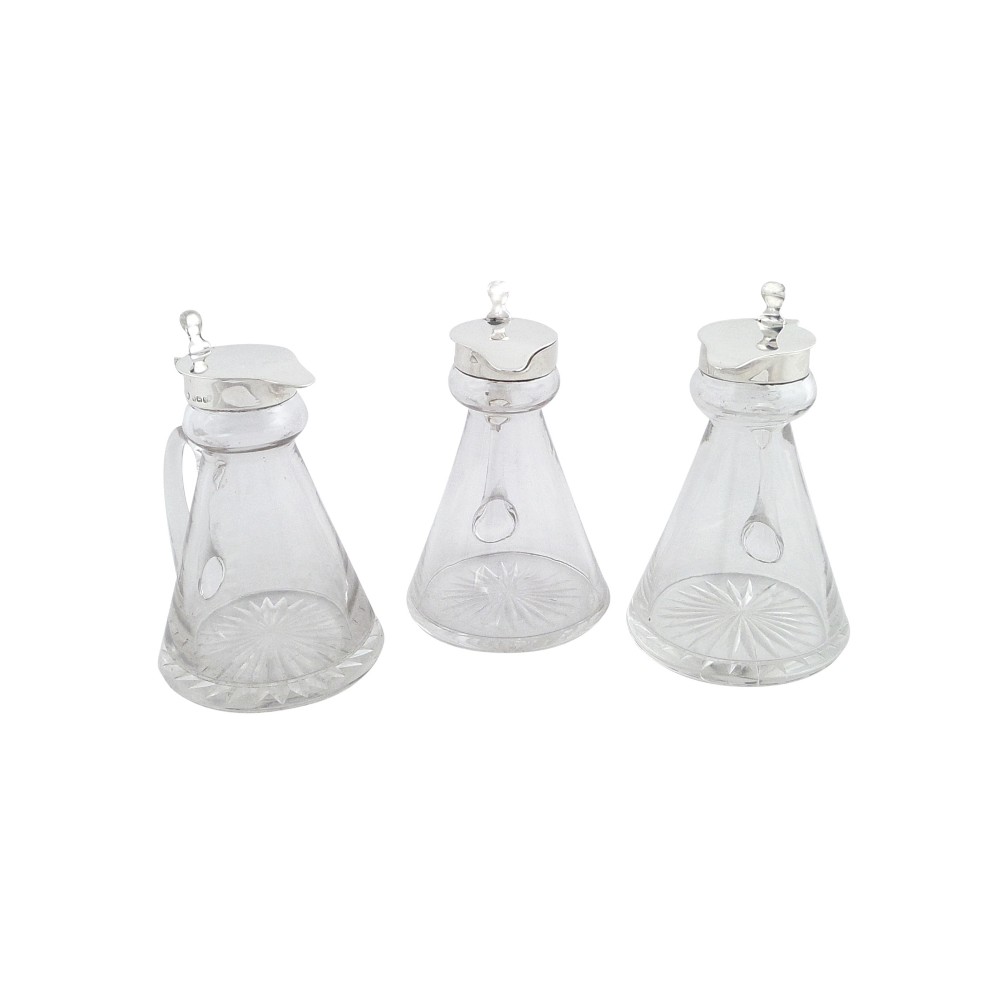 Set of 3 Sterling Silver & Glass Whisky Noggins / Jugs 1936