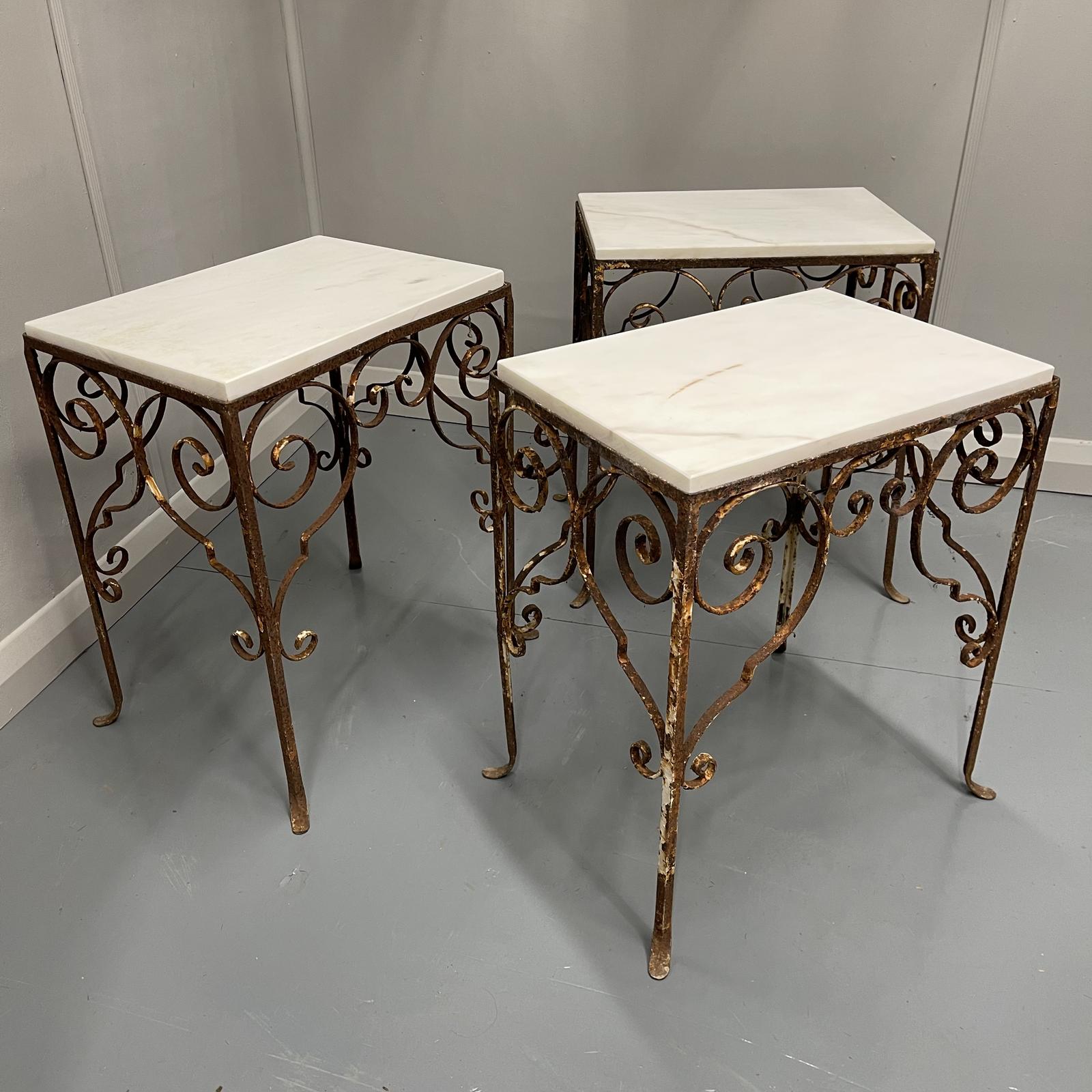 Set of 3 Wrought Iron & Marble Top Side Tables