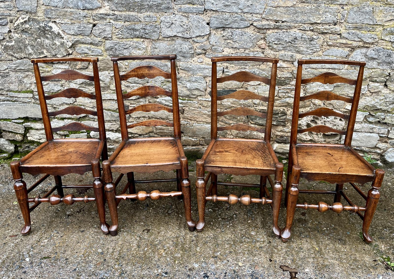 Set of 4 18th Century Ash and Elm Ladderback Chairs