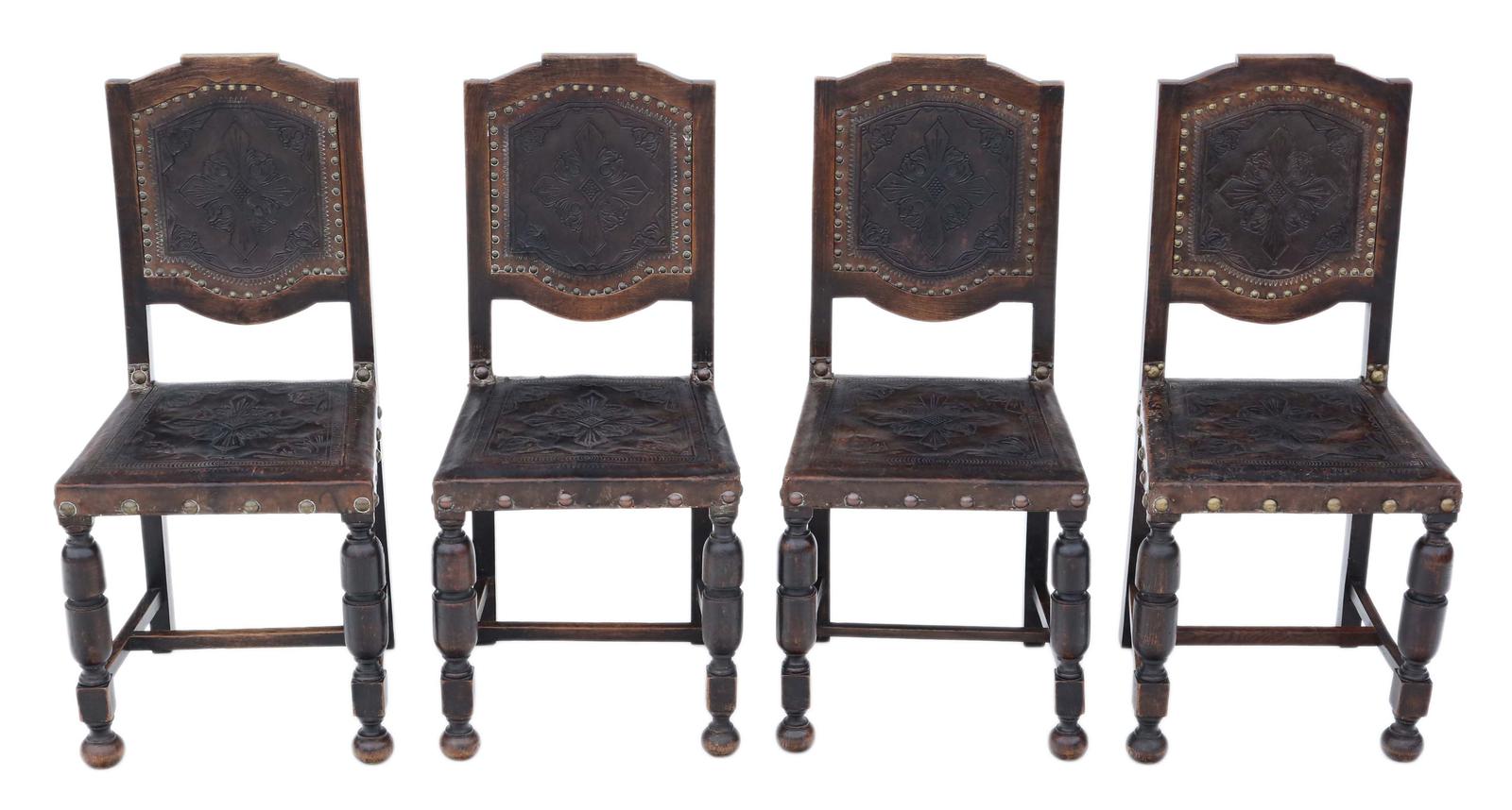 Set of 4 19th Century Portuguese Oak & Leather Dining Chairs (1 of 8)