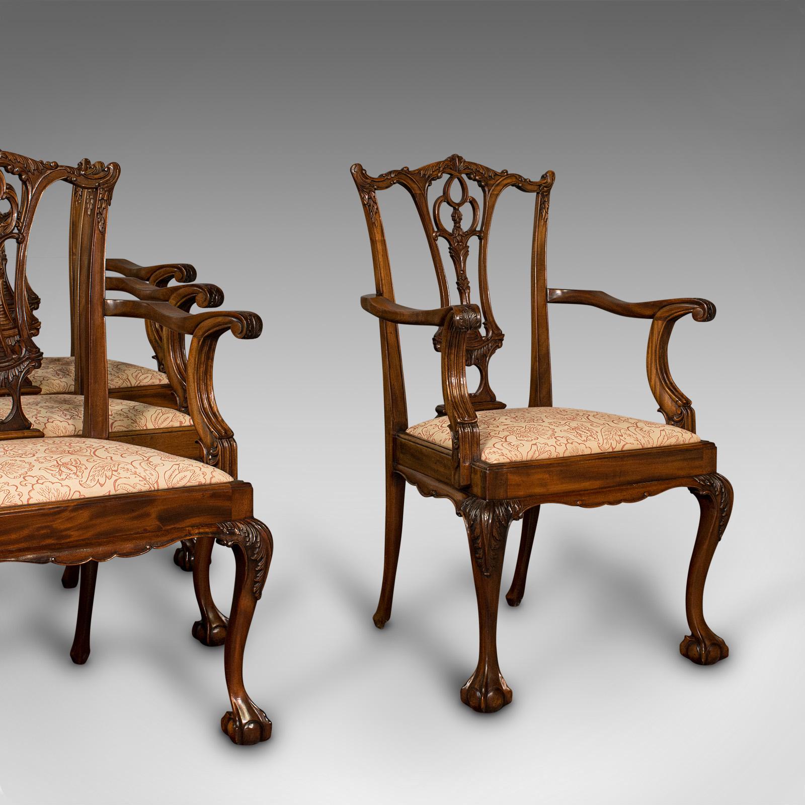 Set of 4 Antique Chippendale Revival Chairs, English, Elbow, Armchair, Victorian