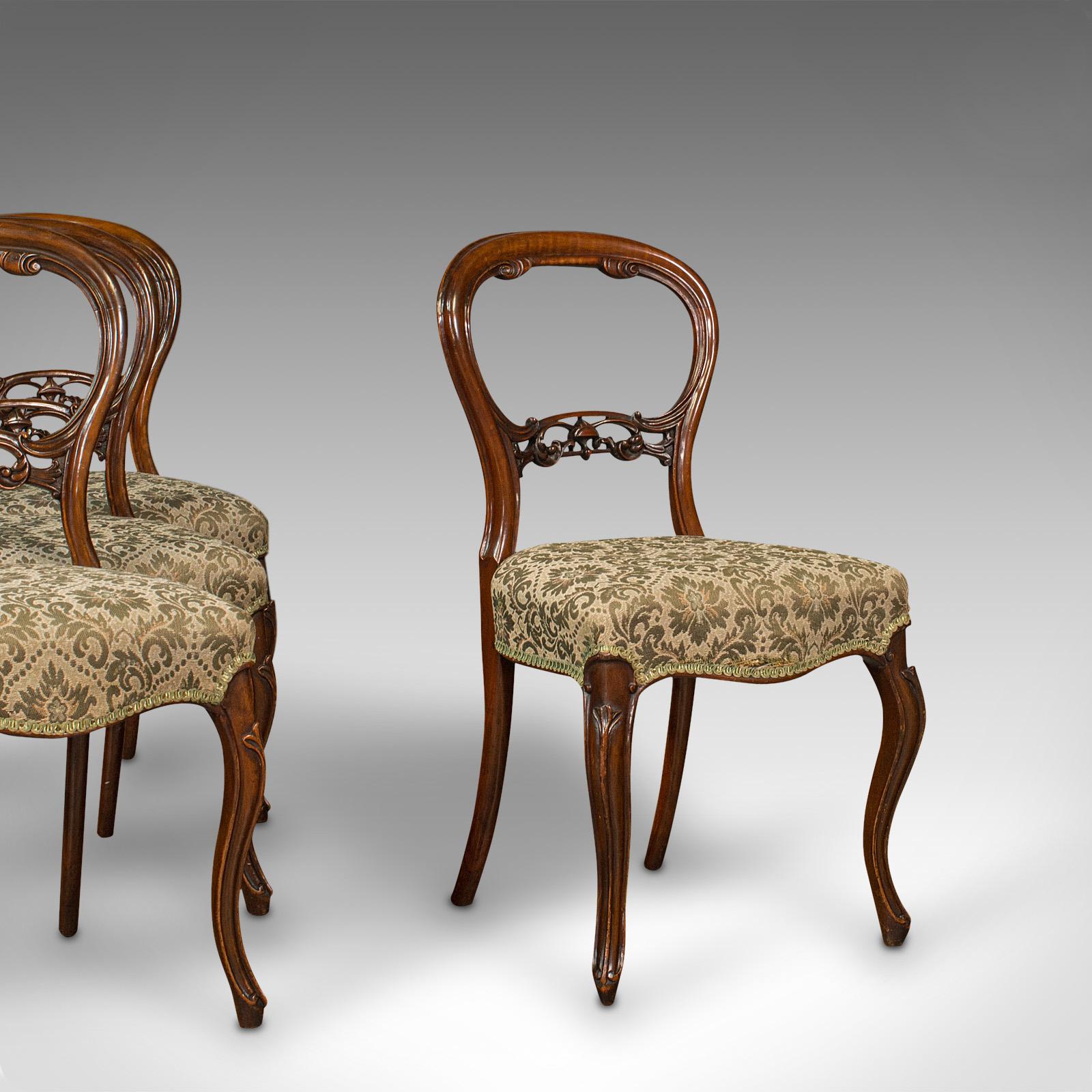 Set of 4 Antique Dining Chairs, English, Walnut, Balloon Back, Victorian c.1850