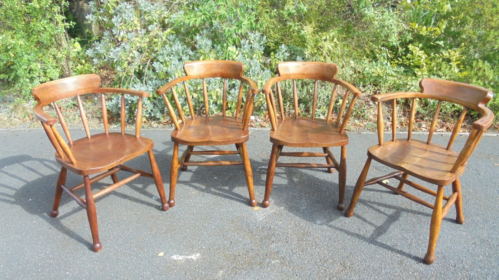 Set of 4 Antique Elm & Beech Kitchen Armchairs