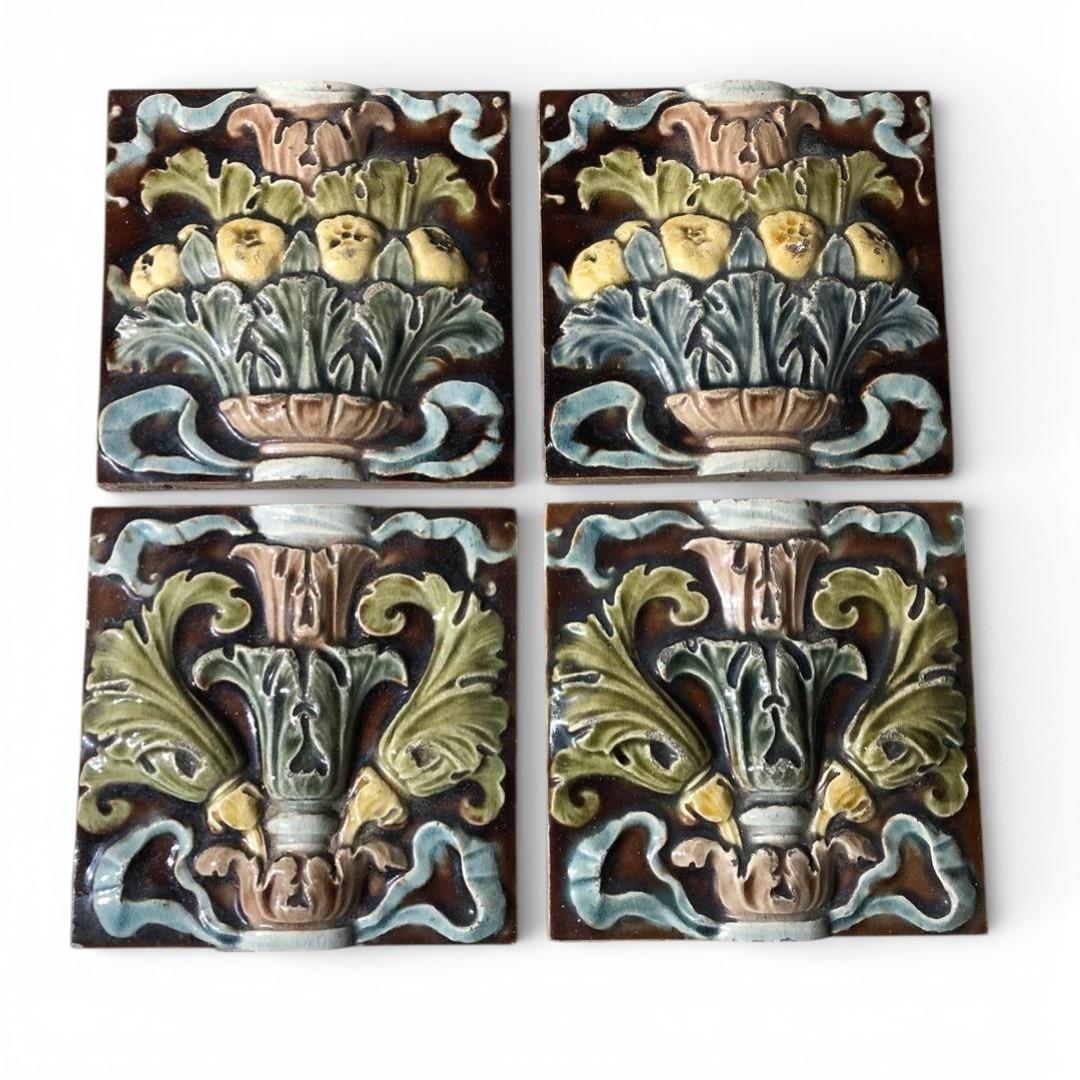 Set of 5 Antique Minton Fireplace Tiles Geometric Floral Design (102)