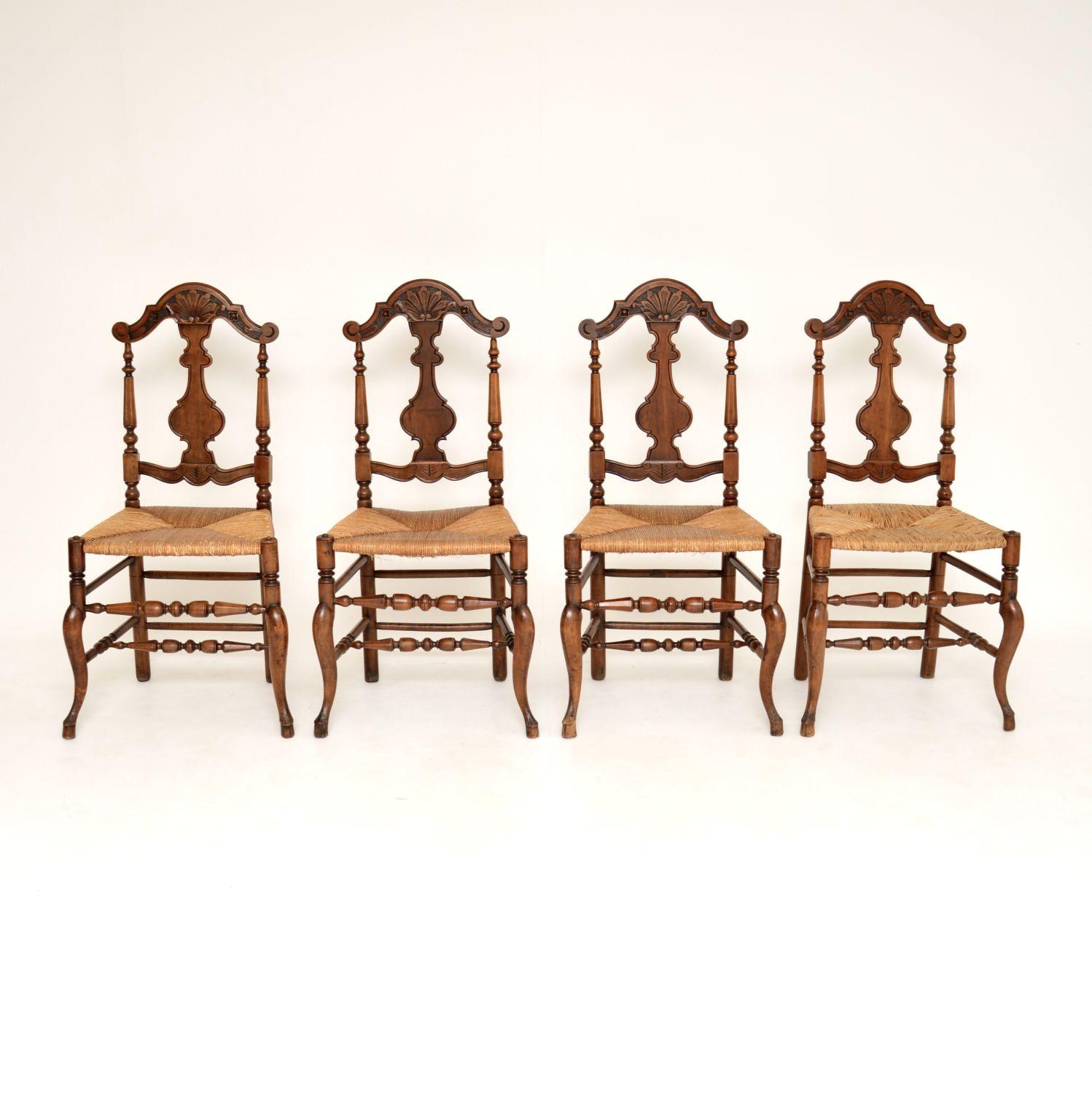 Set of 4 Antique French Provincial Walnut Dining Chairs