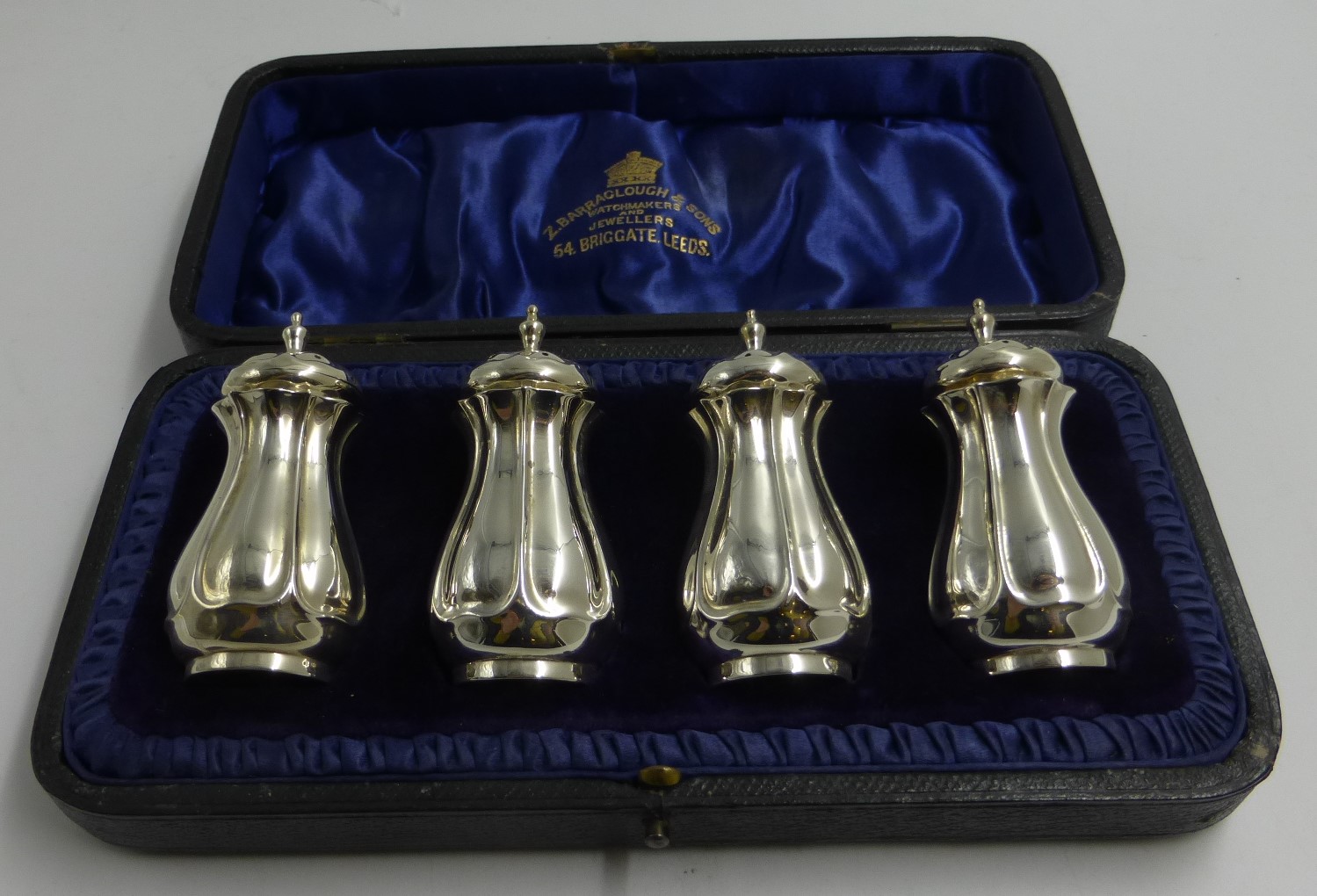 Set of 4 Antique Silver Pepper Pots, Sheffield 1904