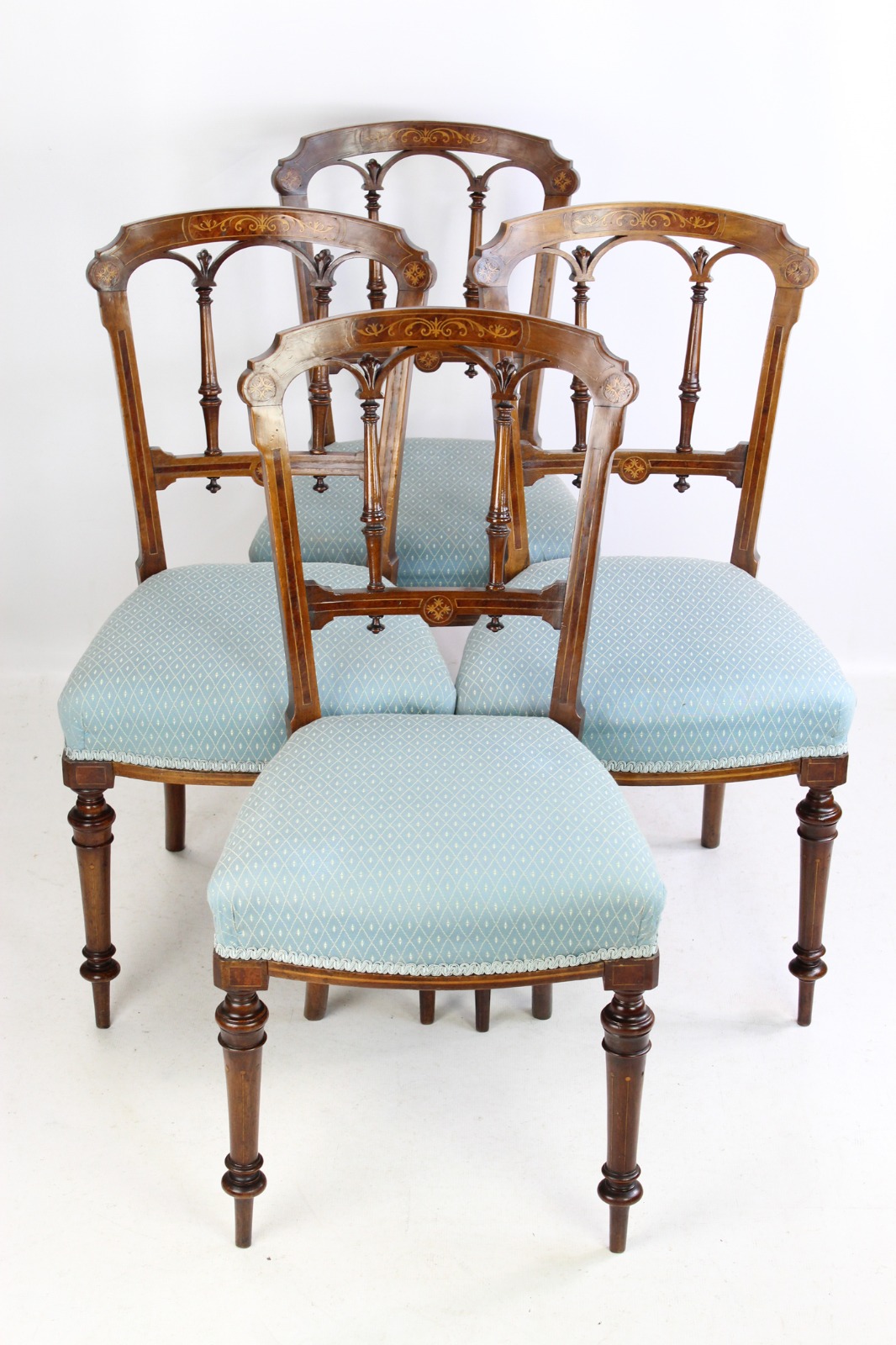 Set of 4 Antique Victorian Inlaid Walnut Balloon Back Chairs