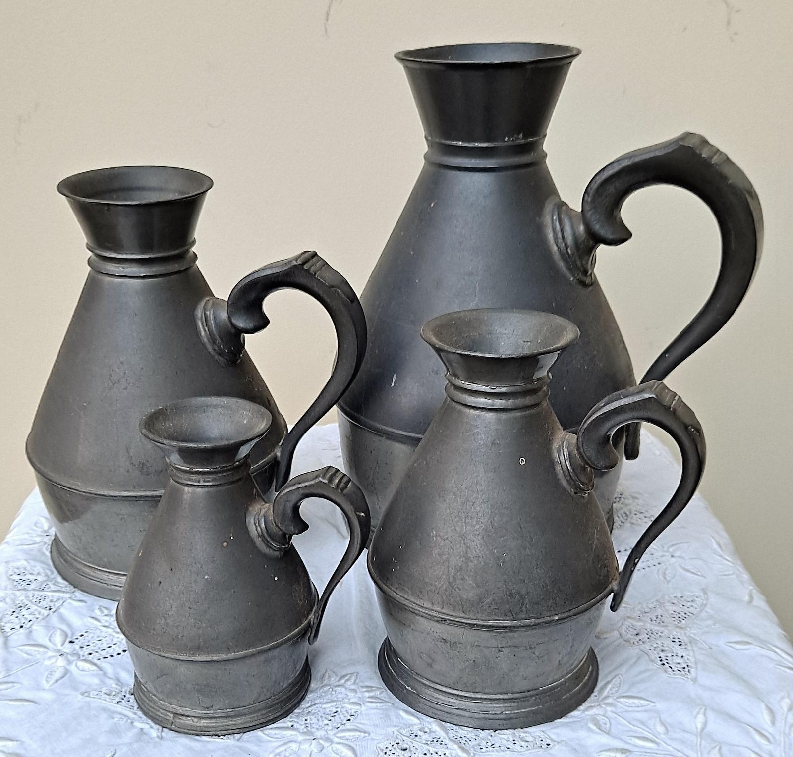 Set of 4 Antique Victorian Irish Pewter "Haystack" Measures