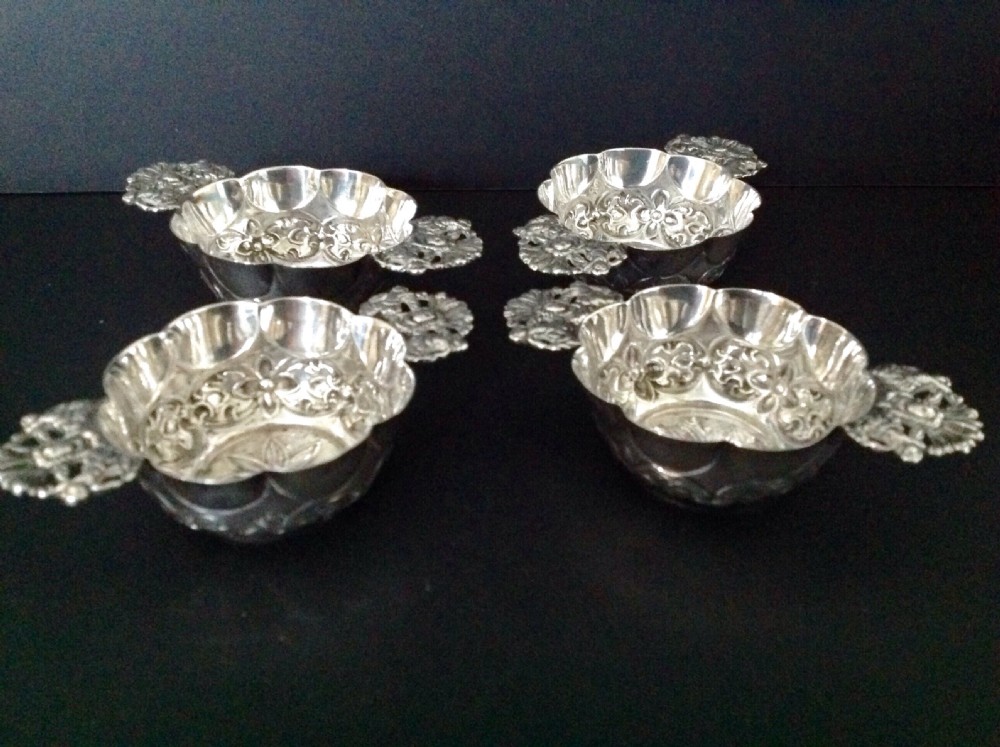 Set of 4 Antique Victorian Silver Quaichs 1894 / 1895